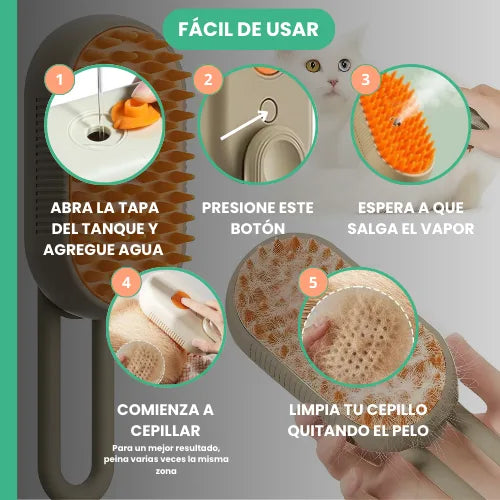 El sistema de vapor elimina suciedad, polvo y pelos sueltos sin irritar la piel. Un pelaje más brillante y una experiencia más saludable.